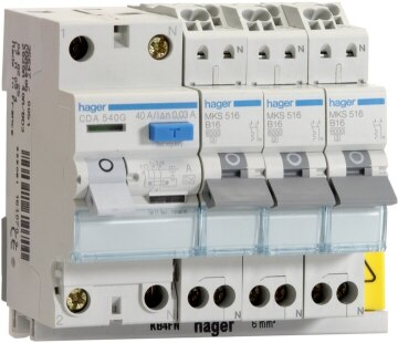 HAGER COMB. 1 ALS 2P + 3 GR. VKS03COMBI