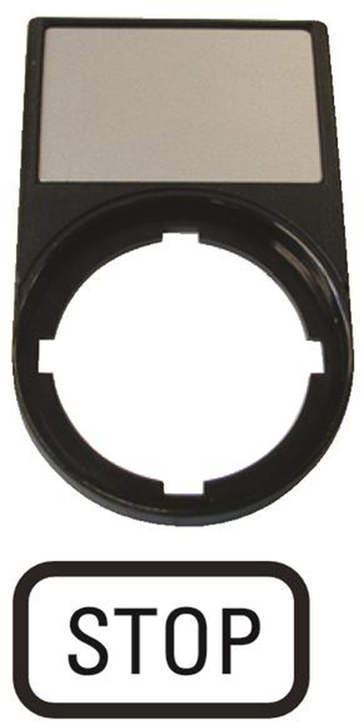 Eaton RMQ-Titan M22 tekstplaat en drager, tekstschilddrager voor drukknop/signaallamp, tekst "STOP", afm. B=30mm, H=50mm, zw./zilver