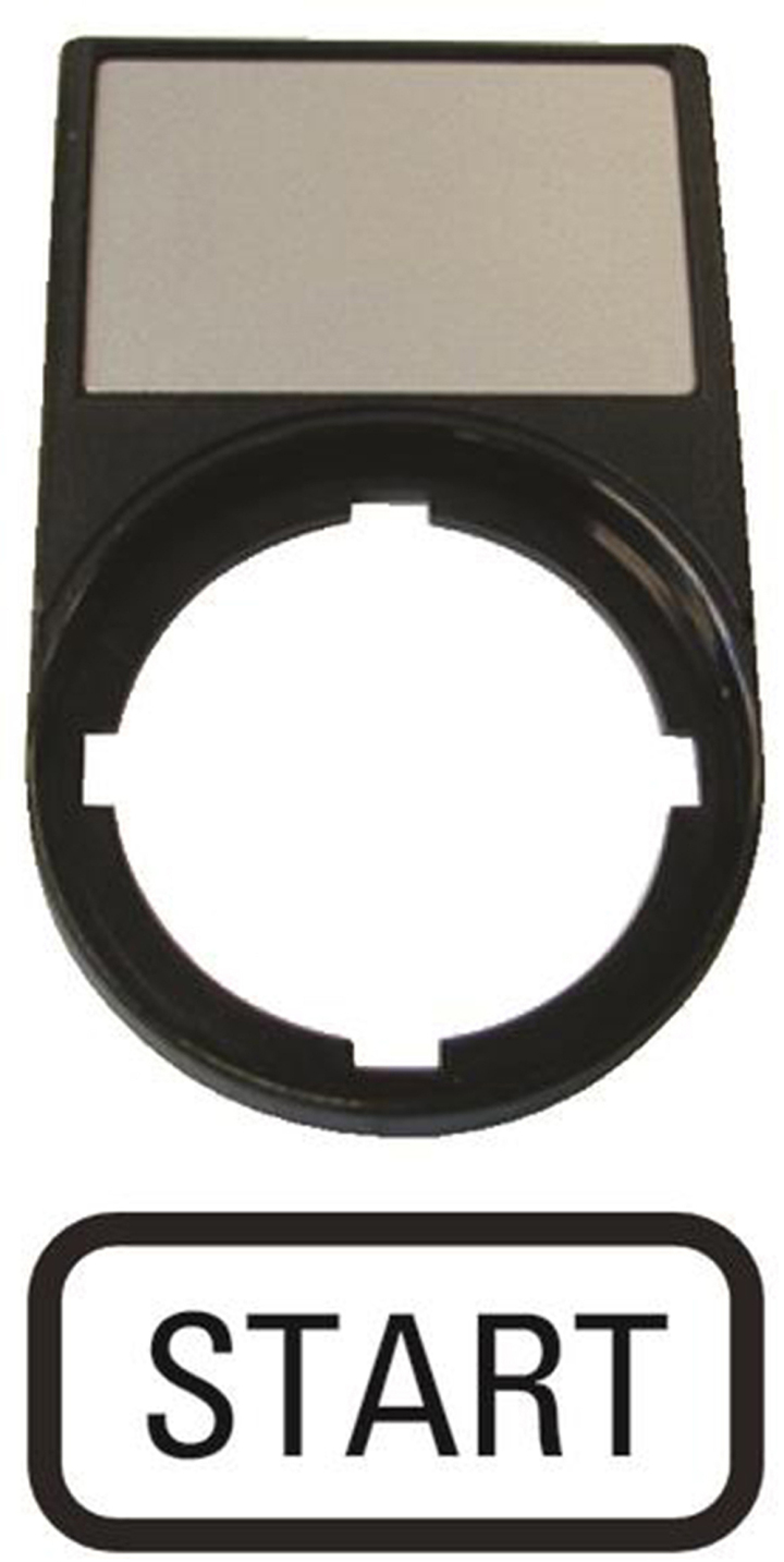 Eaton RMQ-Titan M22 tekstplaat en drager, tekstschilddrager voor drukknop/signaallamp, tekst "START", afm. B=30mm, H=50mm, zw./zilv.