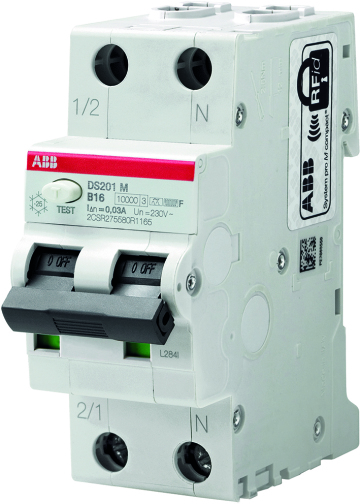 ABB System Pro M Compact aardlekautomaat, 4P B-karakteristiek, AC, 400V, 16A, 0.03A, IEC 15kA, EN 10kA, 50/60Hz, 6 mod, IP20