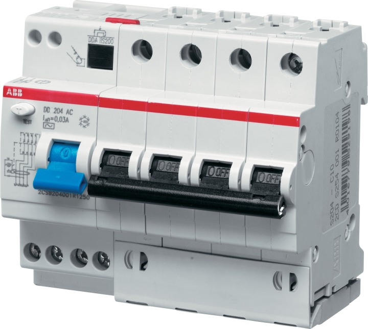 ABB System Pro M Compact aardlekautomaat, 4P C-karakteristiek, AC, 400V, 40A, 0.03A, IEC 15kA, EN 10kA, 50/60Hz, 6 mod, IP20