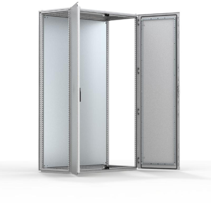 Frame voorzien van deur, achterwand, dakplaat, bodemplaten, montageplaat en deurframe