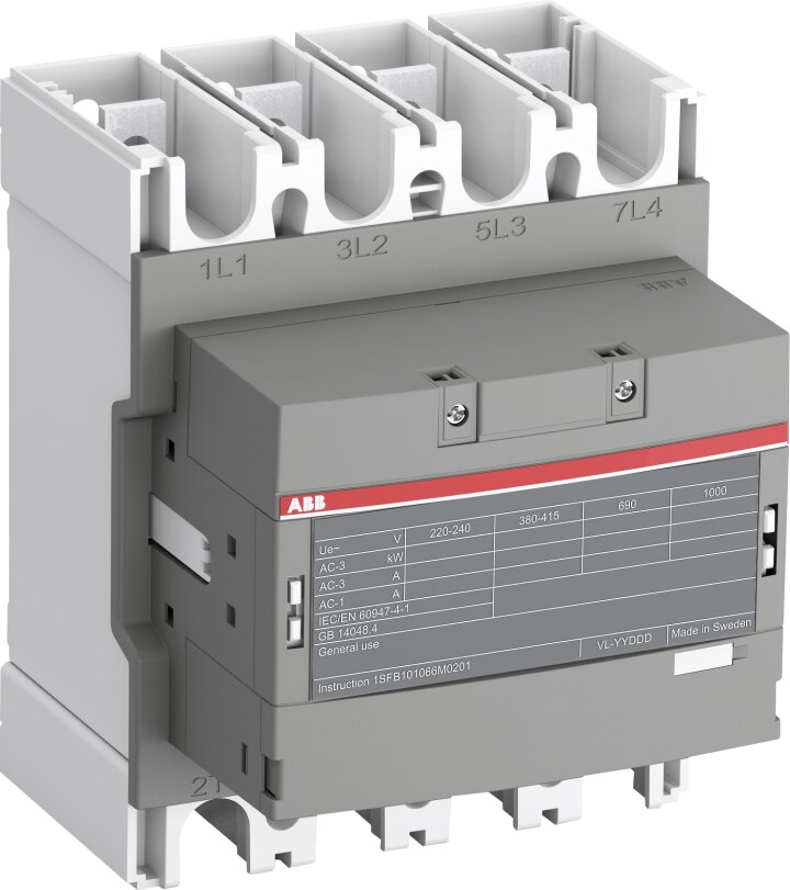 ABB magneetschakelaar AF-serie, 4P, AC1-525A(690V), hulpcontact 0M+0V, spoelspanning: 48-130VAC-50/60Hz/48-130VDC, spoelcode 12