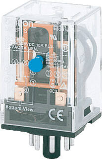 Omron, universeel relais MK-S, 3 wisselcontacten, 230VAC/10A, 3-polig, vergrendelbaar, monostabiel, ongepolariseerd, afwijkend