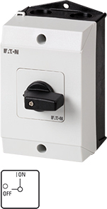 Eaton lastscheider, 4-polig, 1 NO, 1 NC, 20A, 5.5kW, 690V, IP65, draaigreep, schroef, knop zwart
