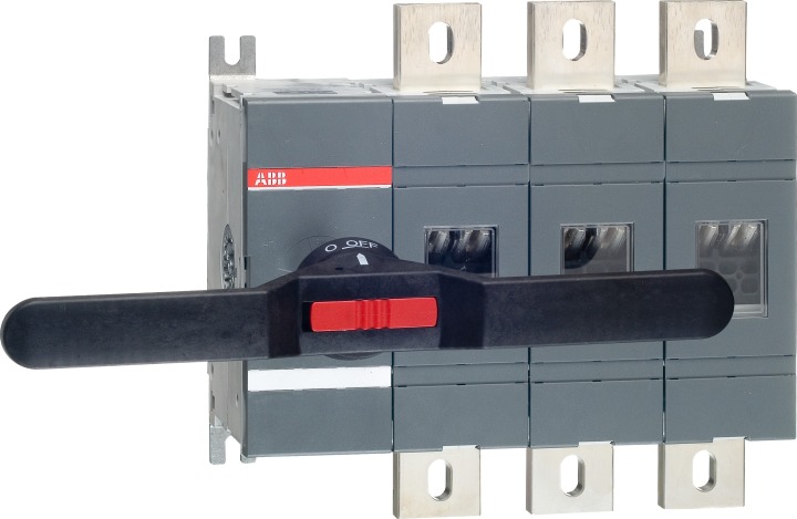 Abb Componenten Switchline lastscheider, hoofdschakelaar, 3-polig, 1250A, 710kW, 690V, IP65, draaigreep, boutklem, knop zwart