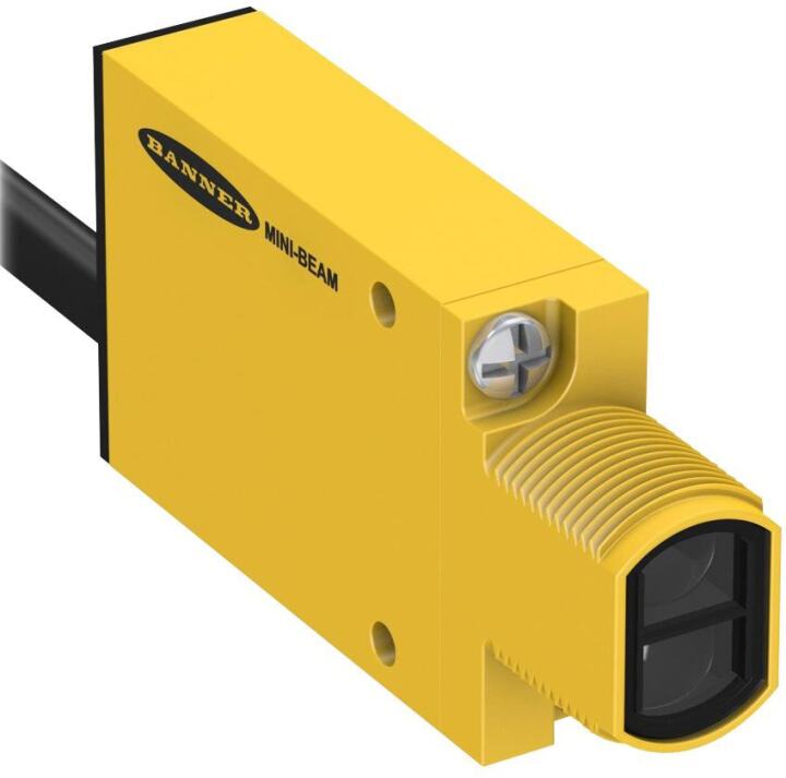 Banner optosensor convergent, brandpuntsafstand 43 mm, 1 x M12, 4-polig, 10-30VDC, PNP/NPN, licht/donkerschakelend, IP67