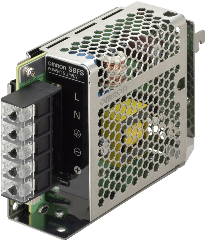 Omron S8FS voeding, 15W, 4.5-5.75V, 3A, 100-240VAC, 120-370VDC, schroef, 2.2-mod, 40VA, din-rail, hxbxd 82x36.2x99mm