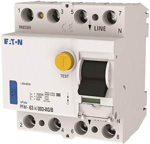 Eaton PFIM-63/4/003-XG/B Aardlekschakelaar 4P 63 Ampere B-KAR 10kA 30mA 400V 4 MOD