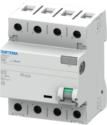 Siemens Sentron 5sv aardlekschakelaar 4-polig, 63A, 400V 0.03A, Type A, lcw 10kA, 4 mod, IP20