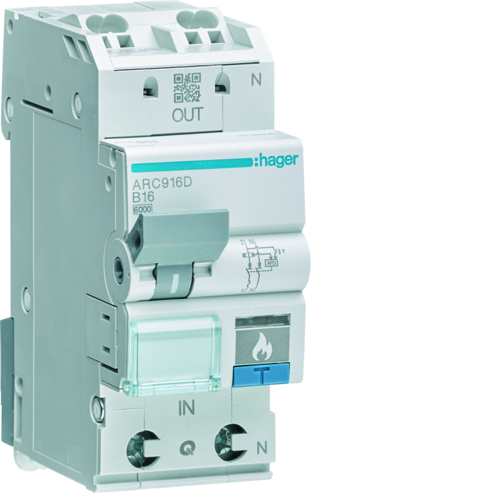 Hager installatieautomaat met vlamboog detectie AFDD 1P+N 6kA B-karakteristiek 16A 2M