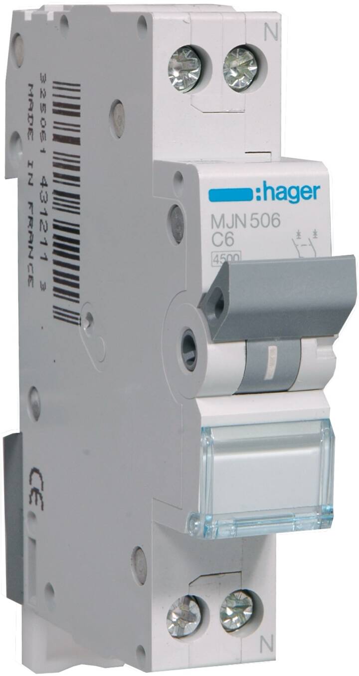 HAGER AUTOMAAT MJN506 C6 1P+N 1MOD