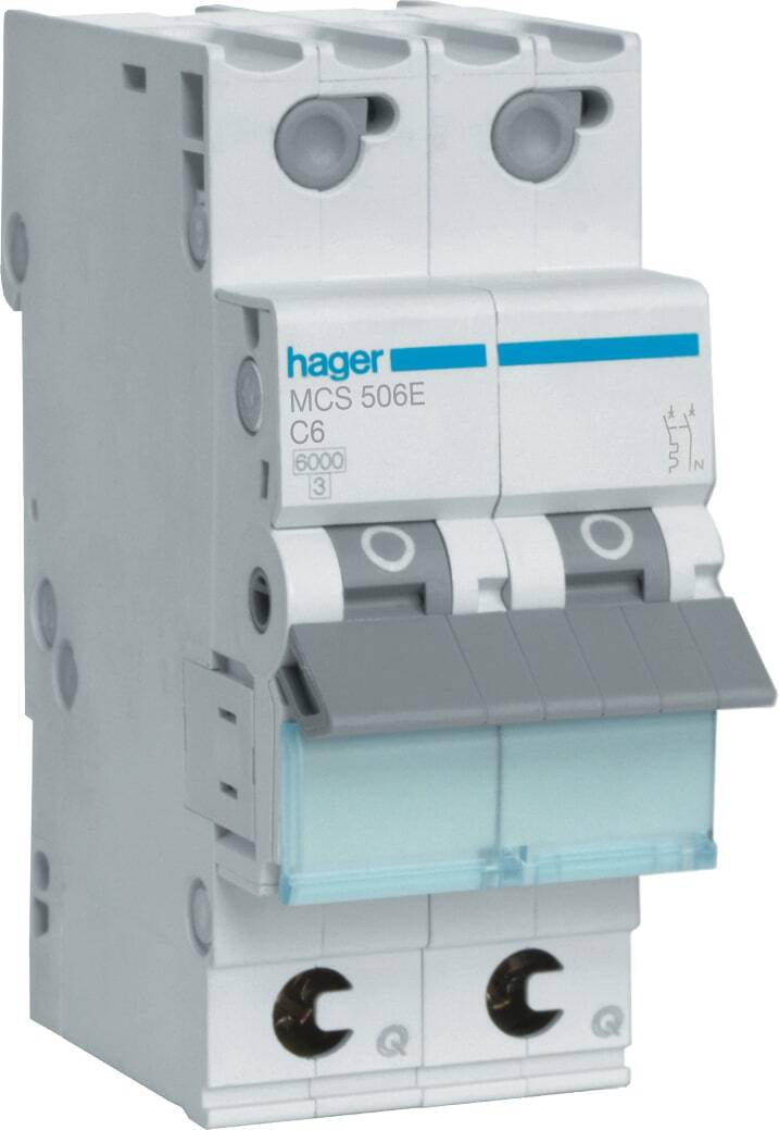 Hager MCS506E Installatieautomaat 1P+N 6 Ampere C-KAR 6kA 230V 2 MOD