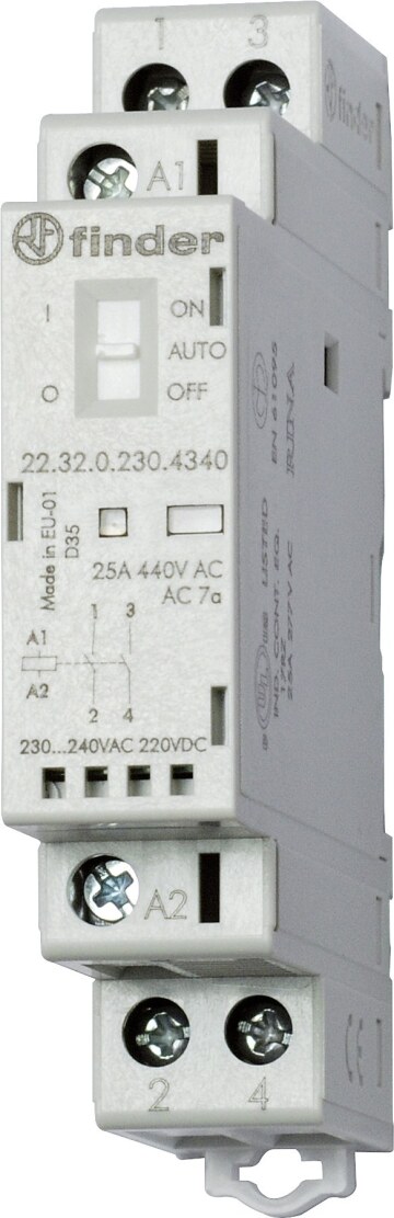 Finder Magneetschakelaar, 17,5mm, 2V 25A /250VAC, spoel 230…