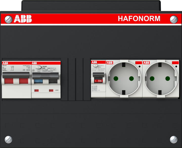 Hafonorm 1-fase Zonneverdeler met 1 hoofdschakelaar 40A 2P, 1 PV aardlekautomaat B25 2P 300mA, 1 aardlekautomaat B16 2P 30mA, 2 WCD?s
