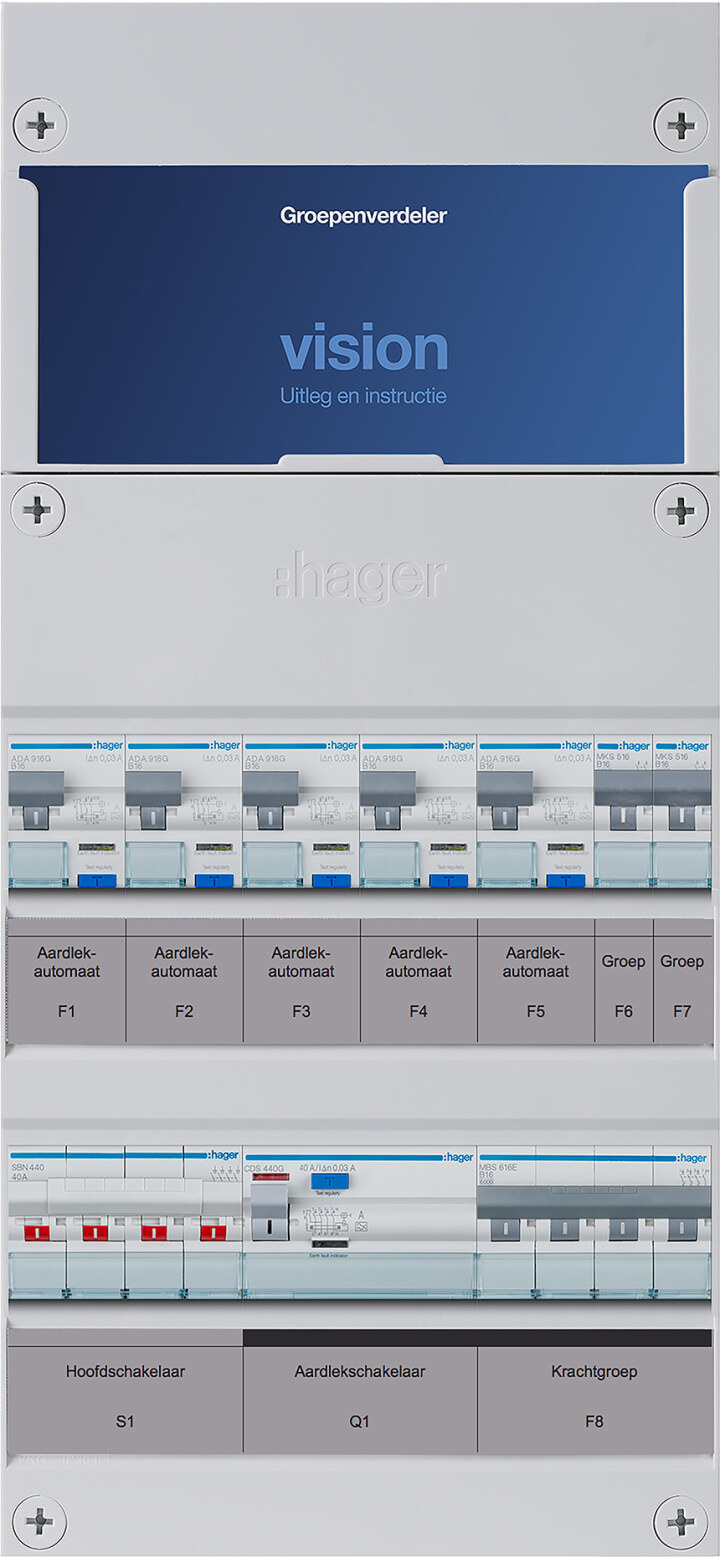 7-groepenverdeler HS, ALS 30 mA/HACO/direct +K, 3-fase