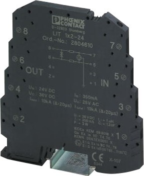 Overspanningsbeveiliging in een ééndelig moduul voor railmontage met een breedte van 6,2 mm voor één zwevend circuit in 2-draads aansluittechniek. Getest volgens beschermklassen in Ex-omgevingen: Ex ia IIC / Ex iaD. Met HART