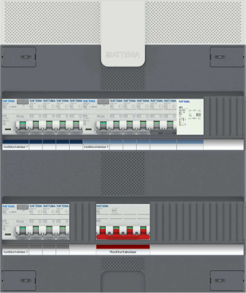 Hager Vision installatiekast, 3-fase, 12 groepen, 3 ALS, HS 40A, 4P, IP30, hxbxd 330x221x89mm