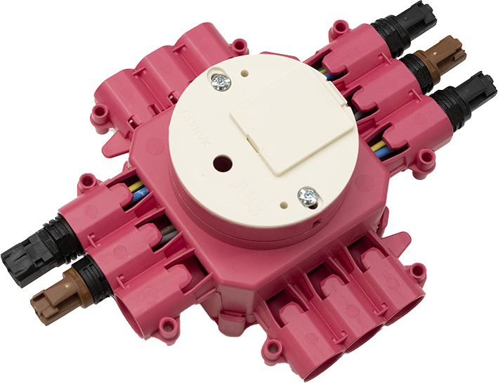 Centraaldoos stekerbaar, WAGO RD, 1 x in , 2x uit , wissel schakelaar
