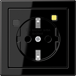 Jung LS range wandcontactdoos, randaarde, steekklem, klauw-/schroef, kindveilig, aan-/uitschakelaar, zwart RAL9005