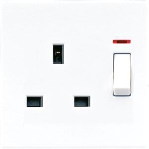 Jung LS range wandcontactdoos, british standard, schroefklem, schroef, kindveilig, controlelamp, aan-/uitschakelaar, wit RAL9016