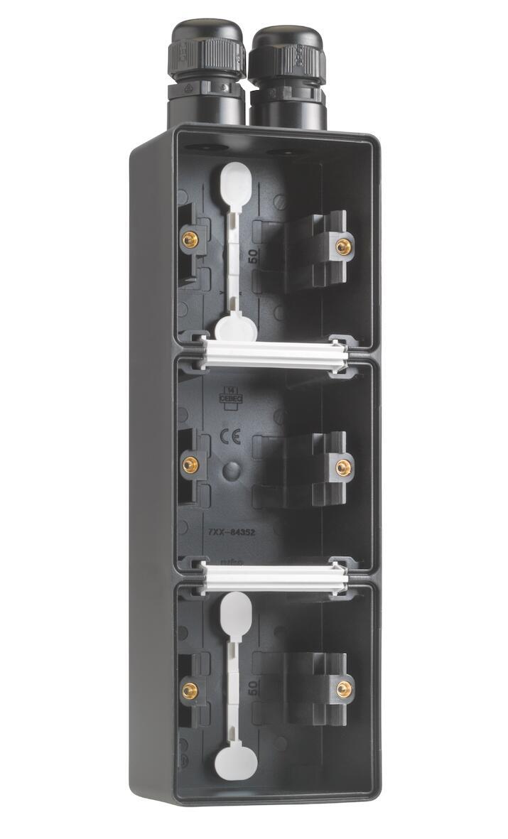 Niko New Hydro 0012 opbouwbak, 3-voudig, verticaal, wartelinvoering, halogeenvrij, hxb 72x72mm, IP55, zwart RAL9005
