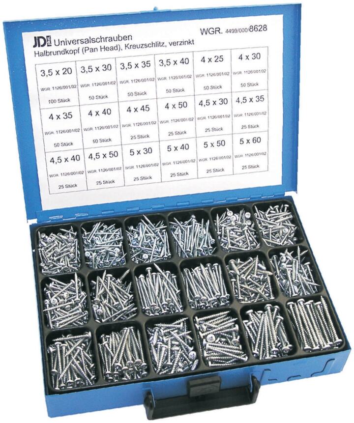 Assortimentsdoos spaanplaatschroeven met halfronde kruis kop