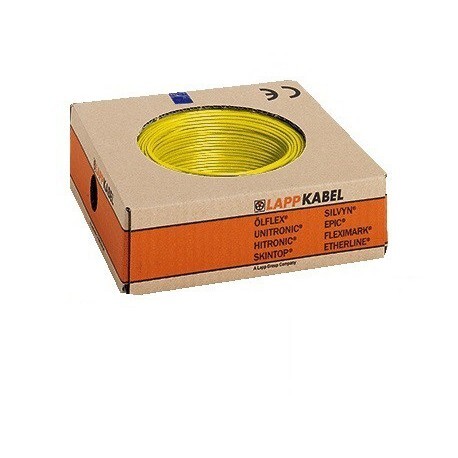 LAPP montagesnoer H05V2-K 1x0,75mm2 GEEL , Ø 2,5mm, ring 100m, pvc mantel, volledig gekleurd, volgens NEN-EN-IEC 61439, 90°