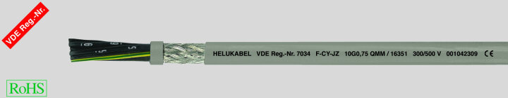 Helukabel F-CY-JZ stuurstroomleiding, 25x0.5mm2, flexibel, afgeschermde kabel cijfers-codering met geel/groene ader