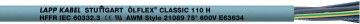 Min. toegestane buigradius flexibele toepassing/vrije beweging: 110