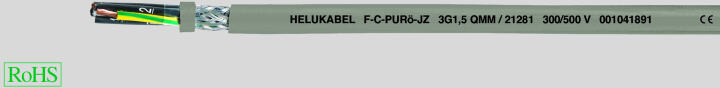 Helukabel F-C-Pure-JZ mantelleiding, 25x1mm2 geel/groene ader, scherm, PVC, cijfercodering, rond 15.9mm PUR, grijs