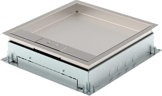 HPL Combi50 instortbehuizing - minimale inbouwdiepte 50mm - 2x gootinvoer 18x190mm en 2x zijde 4x buisinvoer Ø19mm - RVS T25 klapdeksel met 25mm vloerinleg - draagkracht tenminste 350kg