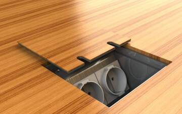 HPL vloerdoos instort 50mm - geschikt voor buisleiding Ø19mm - inclusief 4xWCD 230V (SCHUKO) + 8x data-uitsparing 15x19.6mm - RVS T15ZR klapdeksel met 15mm vloerinleg - draagkracht 350kg