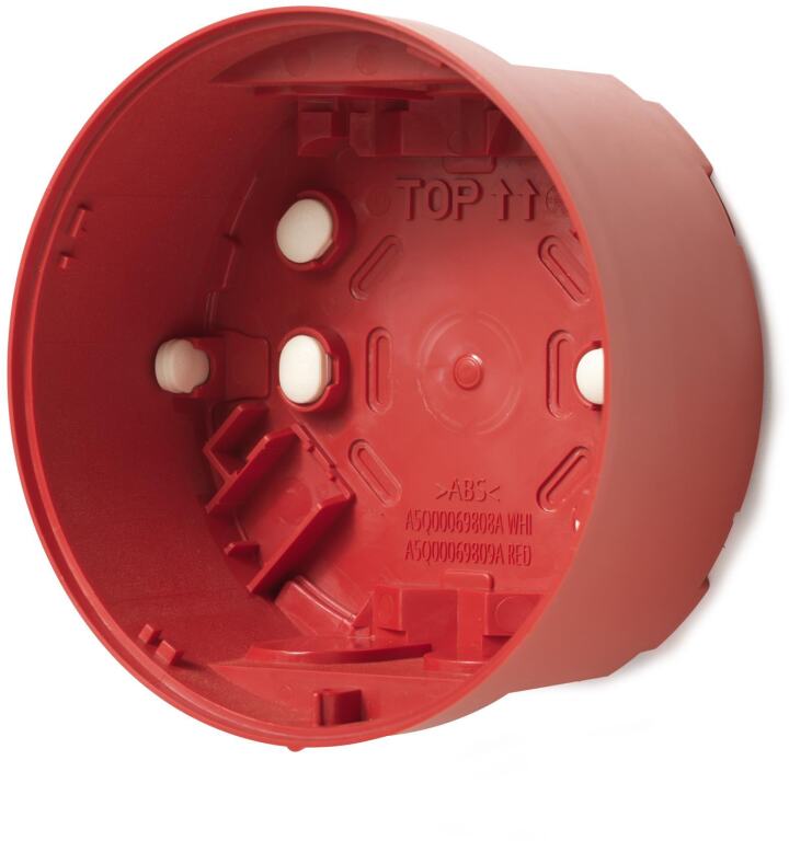 Basis met afgedichte montagesleuven vergemakkelijkt toepassingen in vochtige of natte omgevingen. Vier uitbreekstekkers voor geschroefde kabelwartel M20. Ontworpen voor invoer aan de achterzijde voor voedingsbedrading in nissen en voor oppervlaktebedrading. Compatibel met alle zwaailampen (spraak) (FDS224-R, FDS225-R, FDS226-Rx, FDS227-Rx, FDS227-Rx-C). Plaats voor hulpklemmen 2x DBZ1190-AA en 2x DBZ1190-AB.