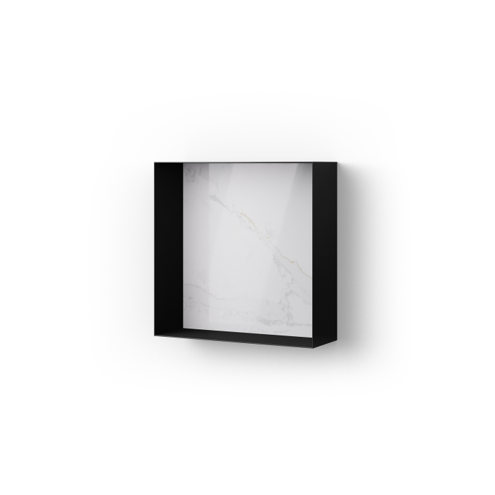 Looox Silestone Colour Box 30x30cm, mat zwart, achterplaat Silestone calacatta gold polished