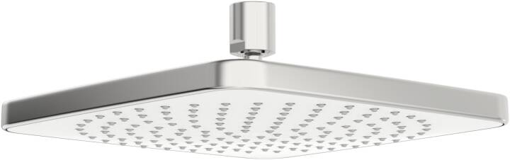 Hansabasicjet Style vaste hoofddouche. De hoofddouche heeft de royale afmetingen van 200 x 200mm en een aansluiting van 1/2". Dankzij het kogelscharnier is de hoofddouche 50° kantelbaar. Een plafond- of wandbuis kan los besteld worden.
