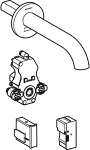 Geberit Piave wst wandkraan, netv. inb-functiebox: rvs look/geb,L=22cm