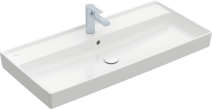 Villeroy & Boch, Collaro, Meubelwastafel, hoekig, 3-gats, doorgestoken, wand, 470 x 1000mm (DxB), steen wit keramiekplus
