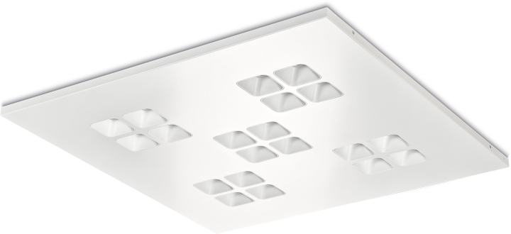 CUBIQ-I is een modulair armatuurconcept gebaseerd op universeel inzetbare led modules (130x130mm). De stofvrije module in combinatie met de PMMA lenstechnologie creëert een uiterst comfortabel lichtbeeld met een UGR<16. Door toepassing van de laatste technologie wordt een rendement behaald tot liefst 150lm/W. Het CUBIQ design concept is dankzij de talrijke configuratiemogelijkheden breed toepasbaar in zowel nieuwbouw- als renovatieprojecten. De CUBIQ-I WIT is in een aantal standaarduitvoeringen uit voorraad leverbaar en is een hoogwaardige, duurzame verlichtingsoplossing geschikt voor systeemplafonds, moduul 600, met zichtbare profielen.