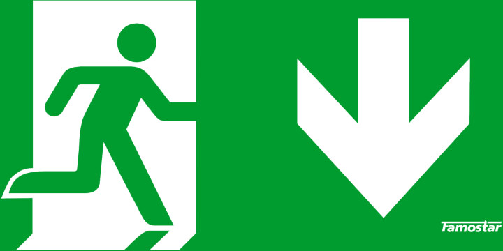 Famostar SIGN beneden 7.0 pictogram noodverlichting, Inlegvel/-plaat, vluchtweg &\/ groen/wit, ISO 7010