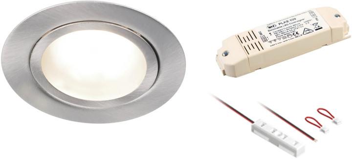 Solar Light set a 2 inbouwspots, 3W, 240lm, 3000K, Ra80, incl. 9W dimb.driver en 4v verdeler, geb.staal, Øxh 72x14mm, gatmaat 55mm