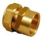 Solar Knelfitting, messing, rechte koppeling schroefbus 22mm x 3/4" (knel x binnendraad)