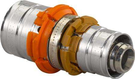 Uponor S-press, fitting, recht, hoek 0°, aansluiting 1: 18mm persmof, aansluiting 2: 16mm persmof