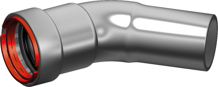 VSH Powerpress, Gebogen fitting, 45° graden, 1" x 1" (persmof x persmof), staal, EPDM, DN25, PN16, max 16 bar, zink/nikkel