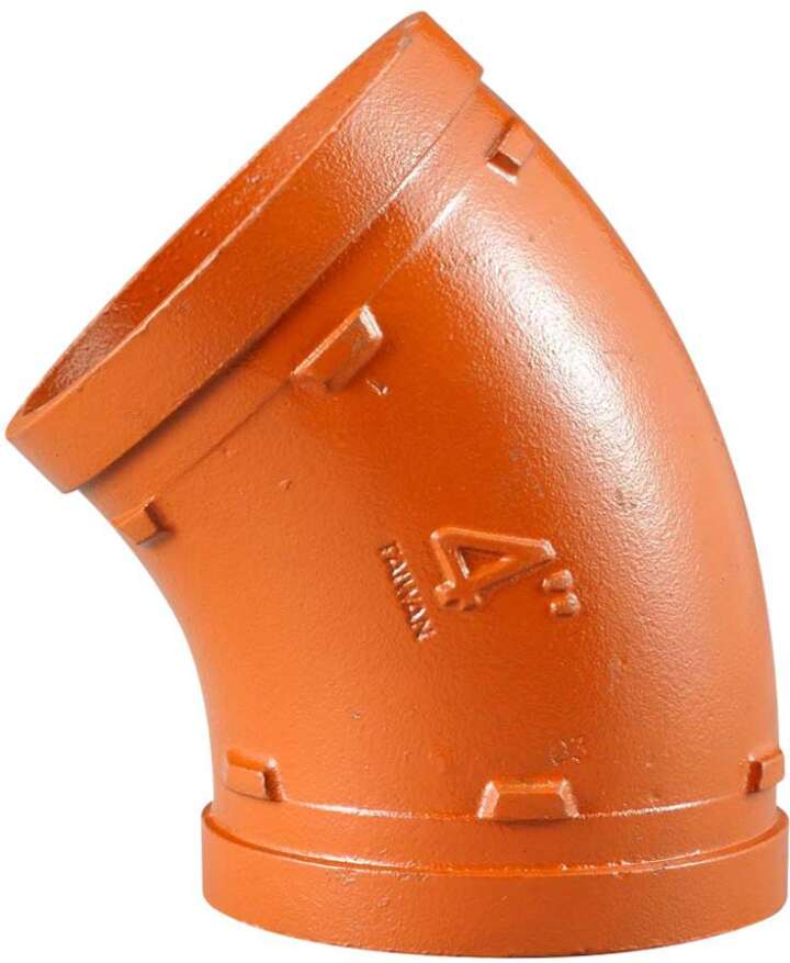 VSH, Bocht koppeling fitting, Shurjoint, 45° graden, gietijzer, max 69 bar, oranje, 88,9mm x 88,9mm (groef x groef)