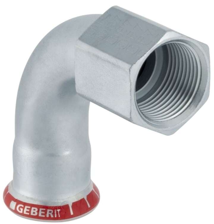 Geberit Mapress, Overgangsbocht, 90 graden, 1-delig, C-staal, met CIIR afdichtring, 42mm x RP1.1/2" (persmof x binnendraad)