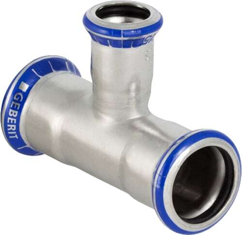 Geberit Mapress, Verloop T-stuk, 90 graden, RVS 316, met CIIR afdichtring, 88,9mm x 22mm x 88,9mm (persmof x persmof x persmof)