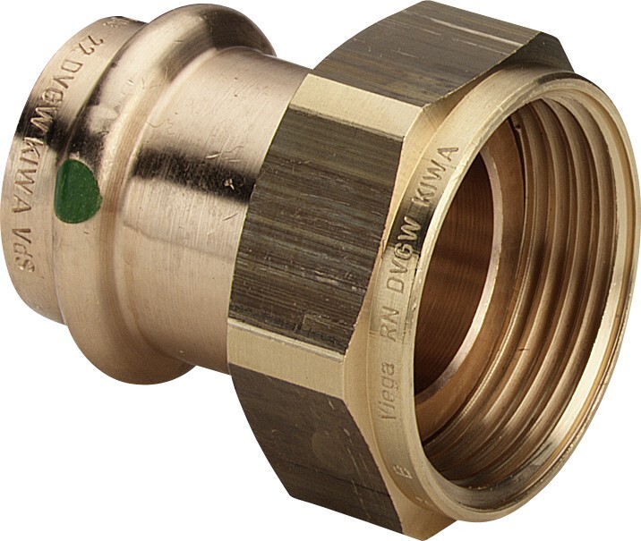 Viega Profipress rechte koppeling, schroefbus 15mm x 1", brons (pers x binnendraad)