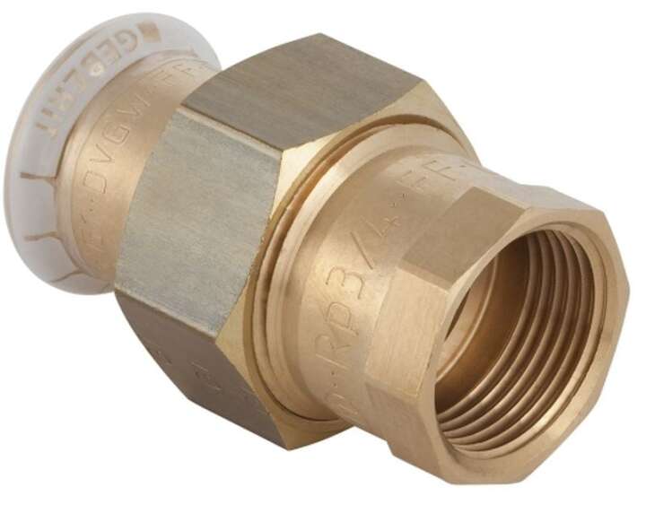 Geberit Mapress, 3D koppeling, recht, 3-delig, brons, met CIIR afdichtring, 18mm x RP3/4" (persmof x binnendraad)