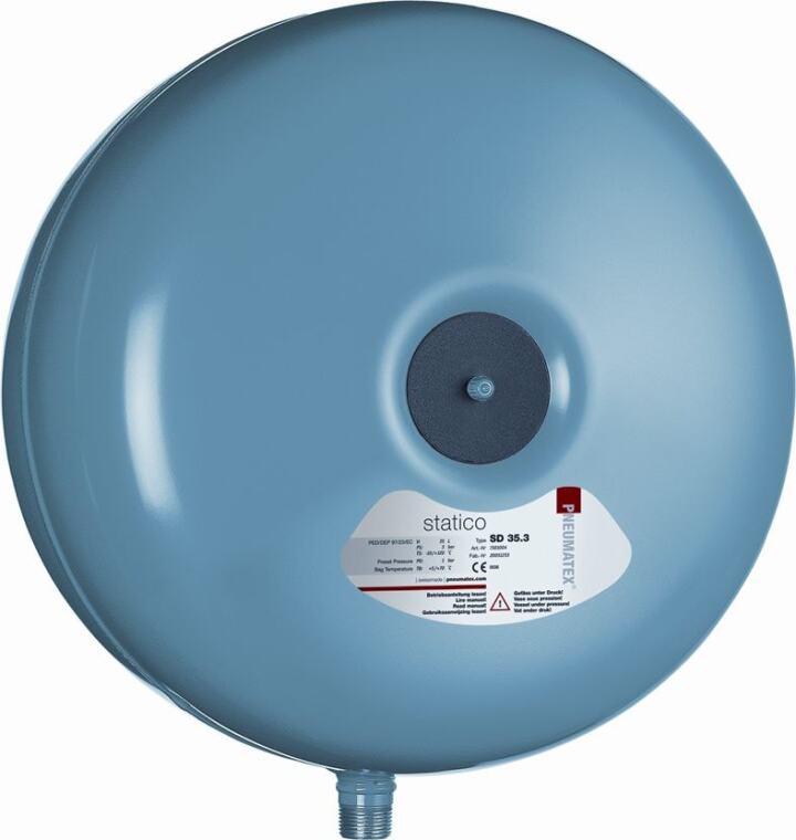 Pneumatex Statico SD expansievat, 80l, voordruk 1.5bar, einddruk 3bar, max 70°C continu, hxØ 346x636mm, blauw